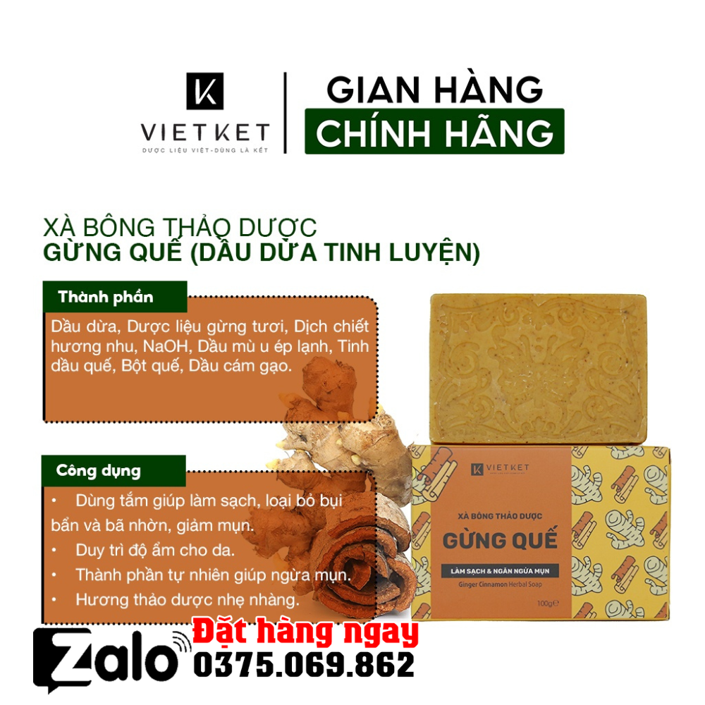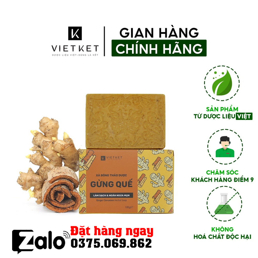 Xà Bông Thảo Dược Gừng Quế VIETKET 100g - Làm Sạch, Giảm Mụn Lưng, Sáng Da, Duy Trì Độ Ẩm, Hương Thơm Thảo Dược.